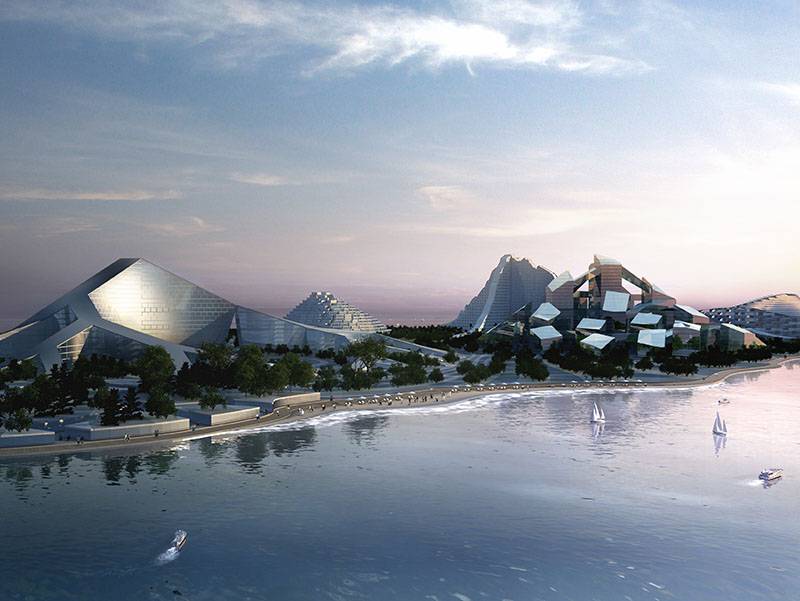 דוגמה נוספת היא גלגול של רעיון של פרויקט מגורים בקופנהגן, הדומה בצורתו לטופוגרפיה הררית. הרעיון שנבע במקרה זה משילוב בין מבנה מגורים למבנה חנייה עבר אבולוציה והתפתח לפרויקט בקנ"מ עירוני יותר באזירבז'אן. לפרויקט זה נדגמו שבעת ההרים החשובים ביותר של הטופוגרפיה באזירבז'אן וקבלו פרשנות חדשה כמבנים אדריכליים המאפשרים מגורים לבני אדם ע"י מיקומם על גבי אי שטוח ומדברי, באופן כזה המייצר מערכת אקולוגית אחת, המנצלת את אנרגיית הרוח להניע את מערכות התפלת המים, שימוש במאפיינים הטרמיים של המים כדי לחמם ולקרר את המבנים, ושימוש במים המתוקים העודפים וסינונם בצורה אורגנית לתוך החוף במטרה להפוך בהדרגה את האי המדברי לנוף ירוק ועשיר בצמחייה.